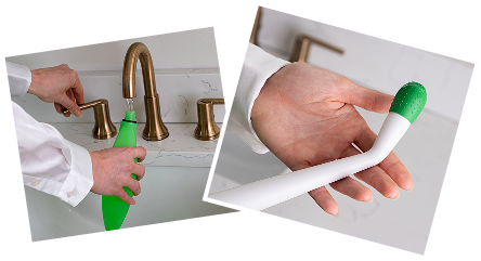 The soft bristled tip gives you a deeper clean, if necessary. Rinse or toss in the wash when done.